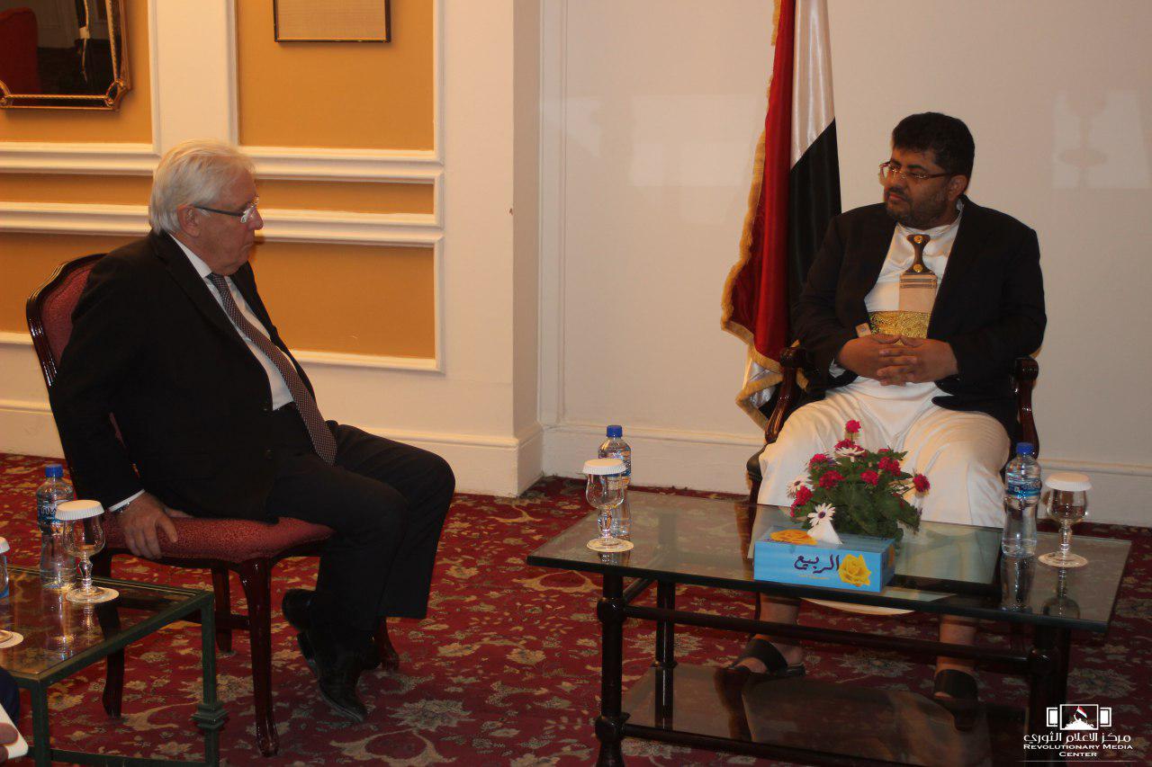 التقى رئيس ما يسمى “اللجنة الثورية العليا”، محمد علي الحوثي، اليوم الأربعاء، في صنعاء، المبعوث الخاص للأمين العام للأمم المتحدة إلى اليمن مارتن غريفيث، لـ”مناقشة سبل تعزيز جهود السلام، وتنفيذ اتفاق ستوكهولم”.