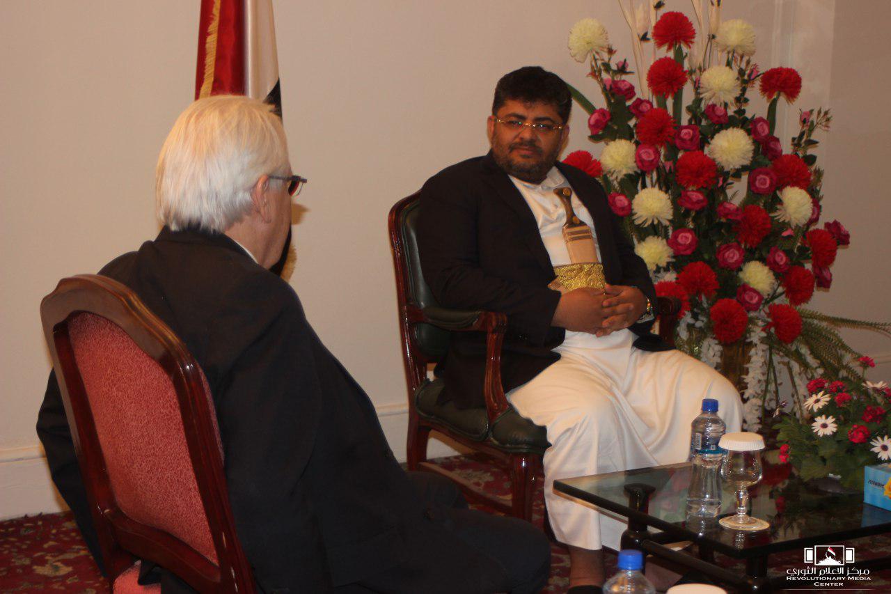 وعقب اللقاء أدلى الحوثي بتصريح لوسائل الإعلام، أشار فيه الى أن “هذه اللقاءات تأتي في إطار دعم جهود السلام”.