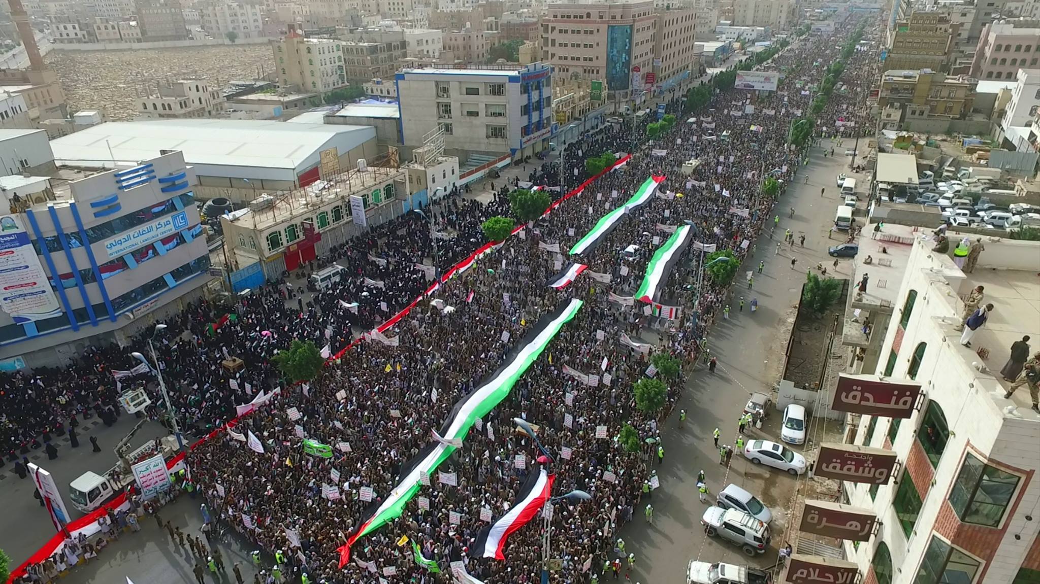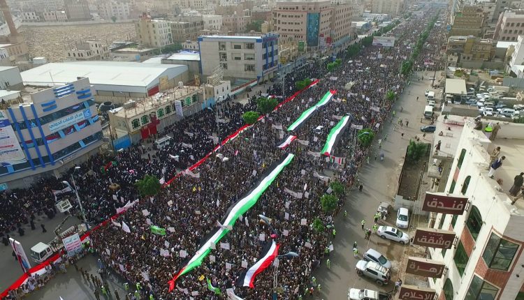 الشعب اليمني يخرج في عدة محافظات لتجديد موقفه المساند للقضية الفلسطينية وبراءته من مواقف التطبيع الخيانية