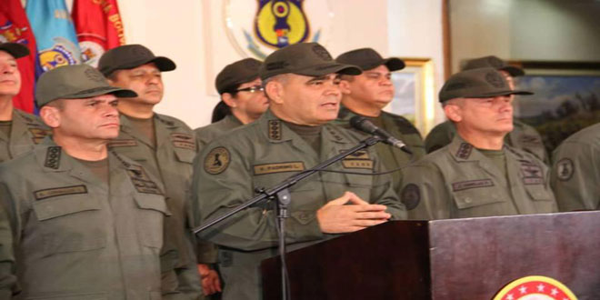 وجدد التأكيد على أن الجيش يدين بالطاعة والولاء الذي لا يتزعزع للرئيس مادورو.