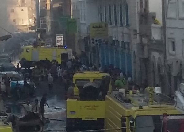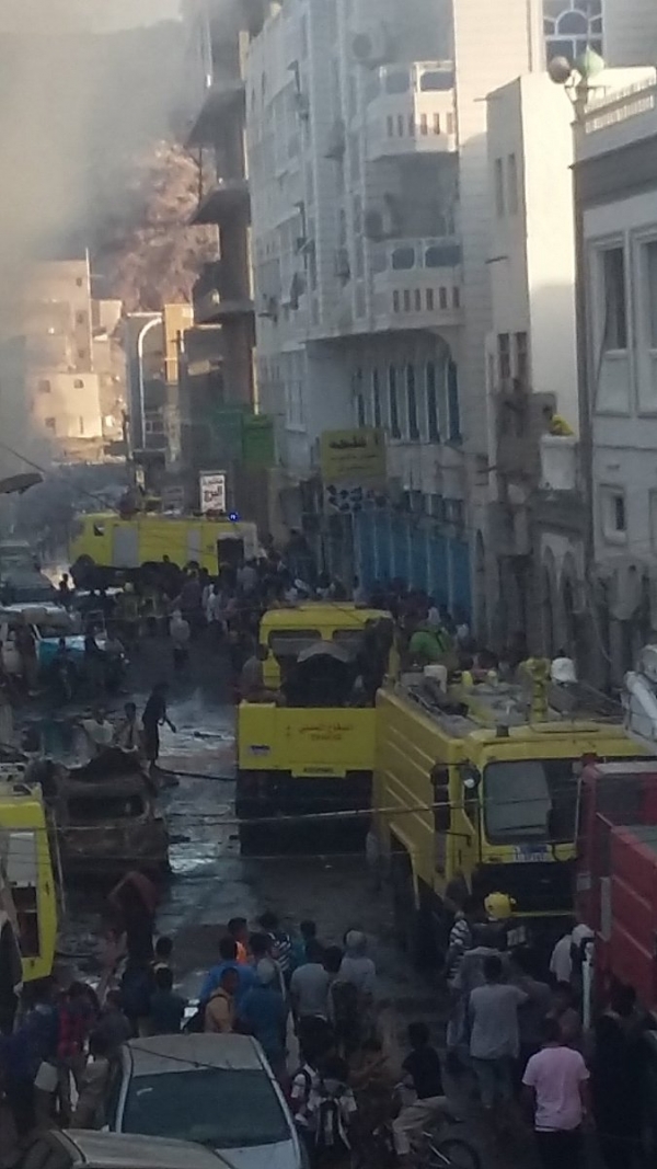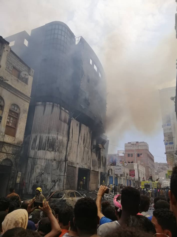 وأضافت المصادر أن الحريق نشب في عمارة المنصري مول الواقعة على مقربة من البنك المركزي بمديرية كريتر بمدينة عدن.
