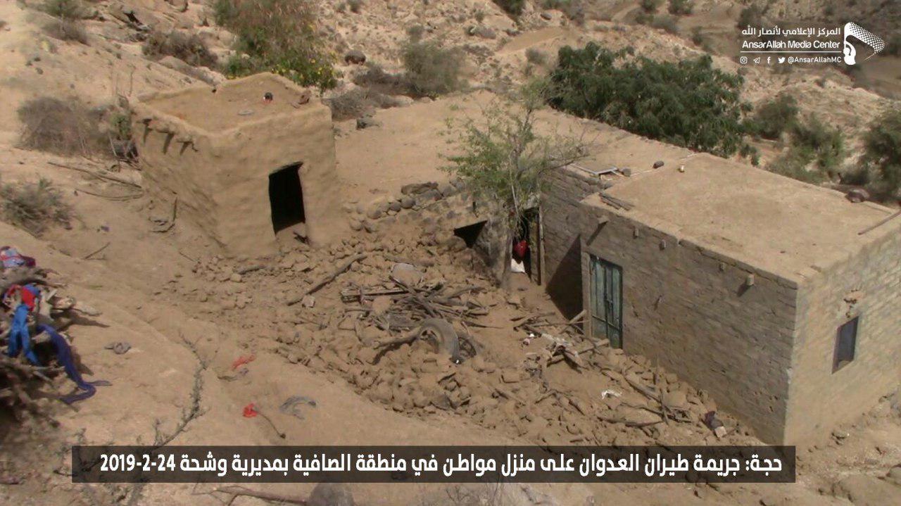 *صور توثّق جريمة طيران التحالف على منزل مواطن في منطقة الصافية بمديرية وشحة بمحافظة حجة.