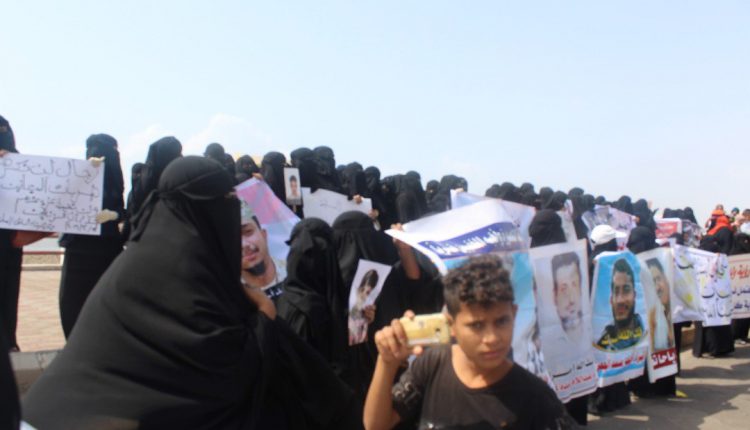 نفذ أهالي المعتقلين والمخفيين قسرا ،صباح اليوم الأربعاء، تظاهرة حاشدة أمام منزل وزير الداخلية في حكومة هادي “الشرعية” بعدن، للمطالبة بسرعة الإفراج عن ذويهم المعتقلين تعسفا والمخفيين قسرا، واحتجاجا على الاعتداء الذي طال الأمهات والأهالي من قبل حراسة سجن بير أحمد يوم الأحد الماضي.
