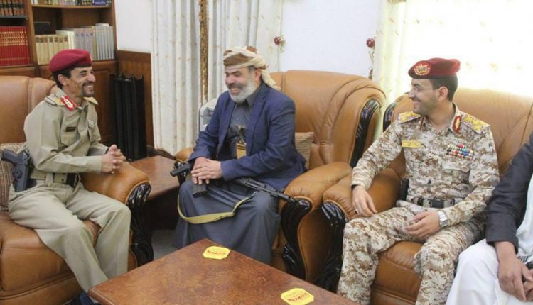 وظهر الشليف في الصورة إلى جانب رئيس دائرة الإستخبارات العسكرية في وزارة الدفاع التابعة للحوثيين، اللواء عبدالله علي الحاكم، والمعروف بـ “أبو علي الحاكم” والمتحدث الرسمي باسم قوات الحوثيين العميد يحيى سريع.