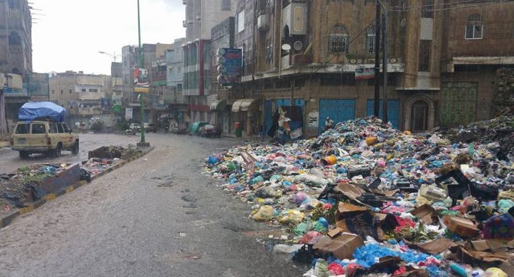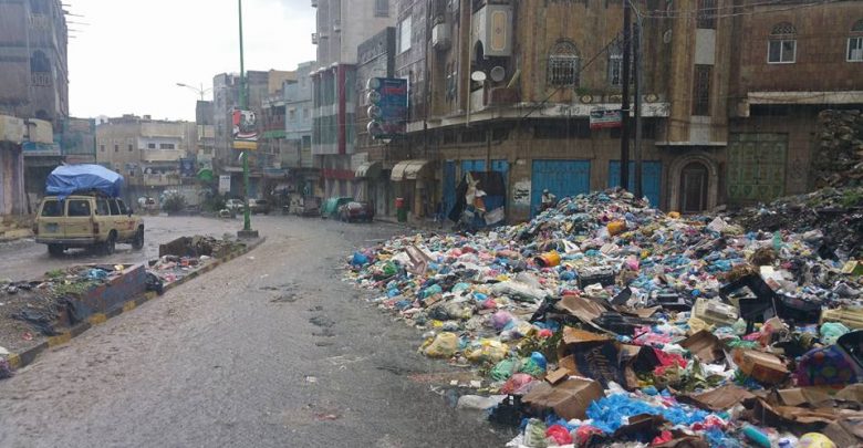 وتشهد شوارع وأحياء مدينة تعز تراكم أكوام القمامة ما أدى إلى تشوهها وتصاعد روائح قد تسبب في ظهور الأوبئة والأمراض المعدية بين سكان المدينة.