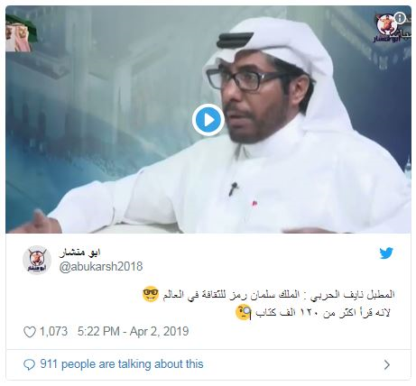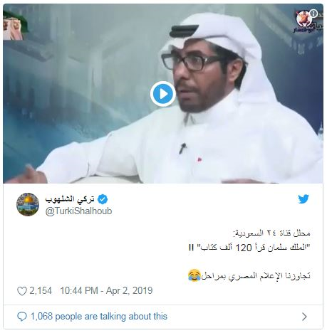 سخرية واسعة من كاتب سعودي قال إن الملك سلمان قرأ 120 ألف كتاب!! (فيديو)