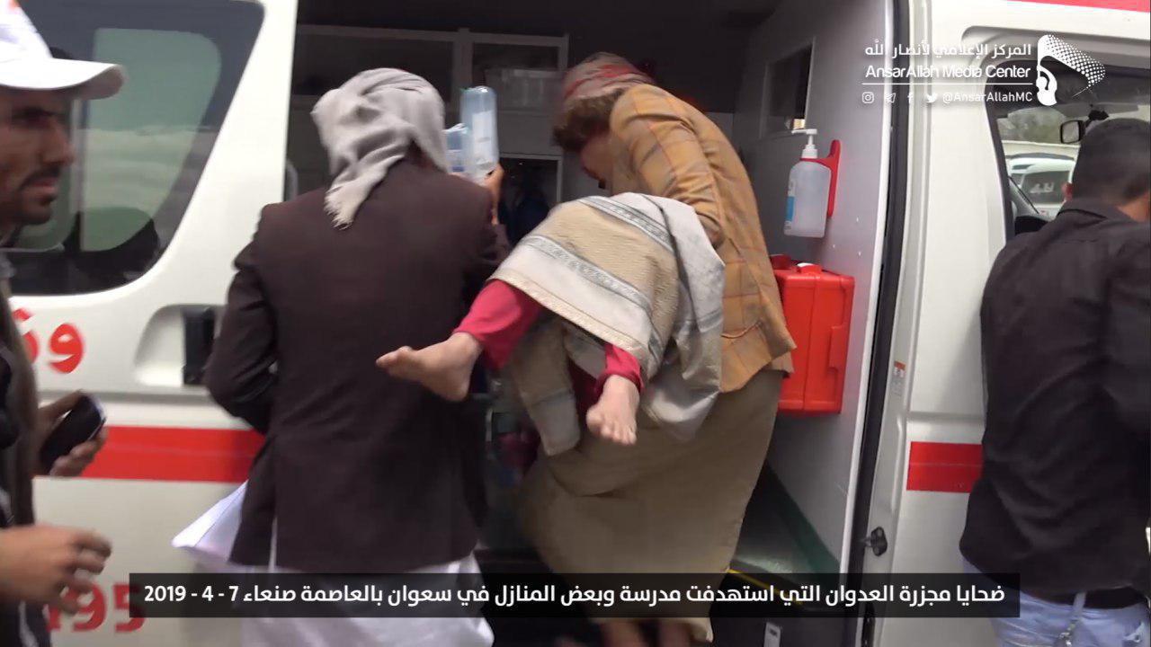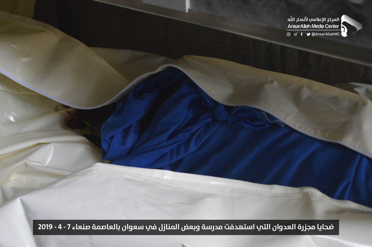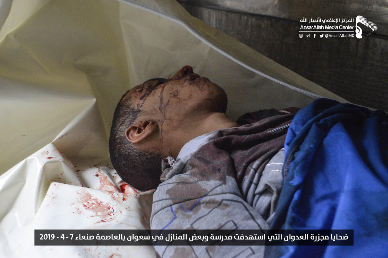 وكانت طائرات التحالف قد شنت عدة غارات ظهر اليوم الأحد، على حي سكني يقع على مقربة من مدرسة الراعي في سعوان، شرقي العاصمة صنعاء.