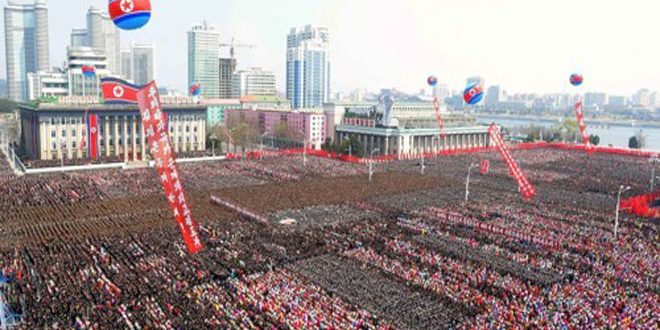 أقامت كوريا الديمقراطية أمس احتفالات حاشدة في ساحة كيم إيل سونغ في العاصمة بيونغ يانغ وذلك بمناسبة إعادة انتخاب كيم جونغ أون رئيساً لمجلس شؤون الدولة في البلاد.