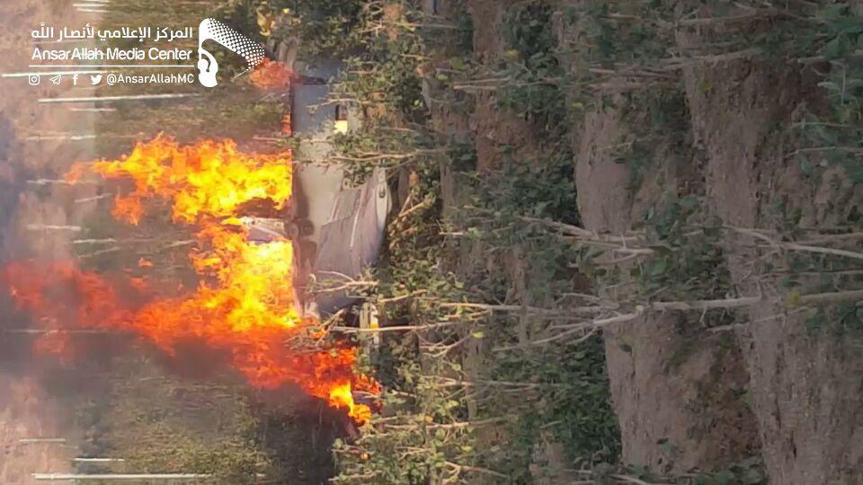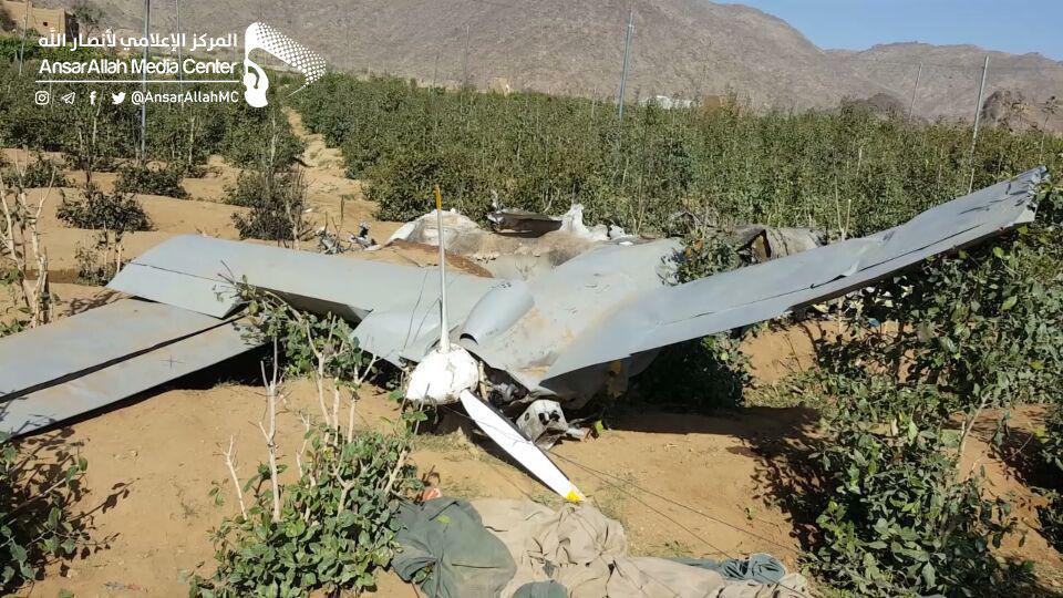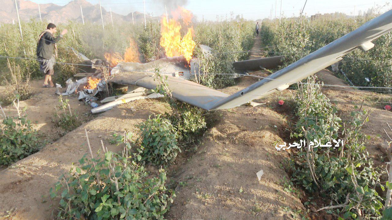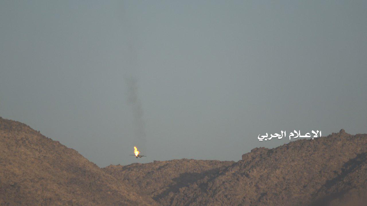 وبينت المشاهد لحظة إطلاق الدفاعات الجوية صاروخ أرض -جو (غير معلن عن نوعه ويتم وصفه بالسلاح المناسب) على الطائرة ولحظة إصابتها ثم مع سقوطها في مزرعة، صالح الصماد، رئيس المجلس السياسي السابق، الذي اغتيل في مثل هذا اليوم من العام الماضي بطائرة من ذات النوع بحسب مجلة فورين بوليسي الأمريكي وتقرير مسرب عن الإستخبارات العسكرية الفرنسية نُشر قبل أيام.