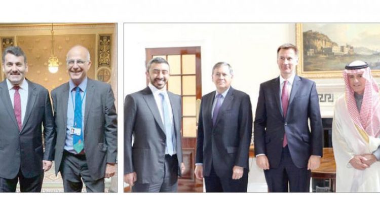 قالت مصادر مطلعة إن لقاء «المجموعة الرباعية» الوزاري بشأن اليمن الذي عُقِد في لندن، الجمعة، دار حول توافق على ضرورة شروع حكومة هادي والحوثيين بتنفيذ «اتفاق الحديدة» قبيل الخامس عشر من مايو (أيار) المقبل، أي خلال 18 يوماً، الذي يوافق انعقاد الجلسة المقبلة حول اليمن في مجلس الأمن.