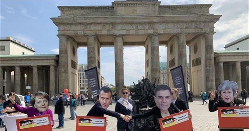 شهدت العاصمة الألمانية برلين؛ السبت، وقفة احتجاجية، نظمها عدد من الناشطين للتعبير عن رفضهم لاستمرار دول الاتحاد الأوروبي في بيع الأسلحة للسعودية والإمارات، لدورهما في الحرب على اليمن.