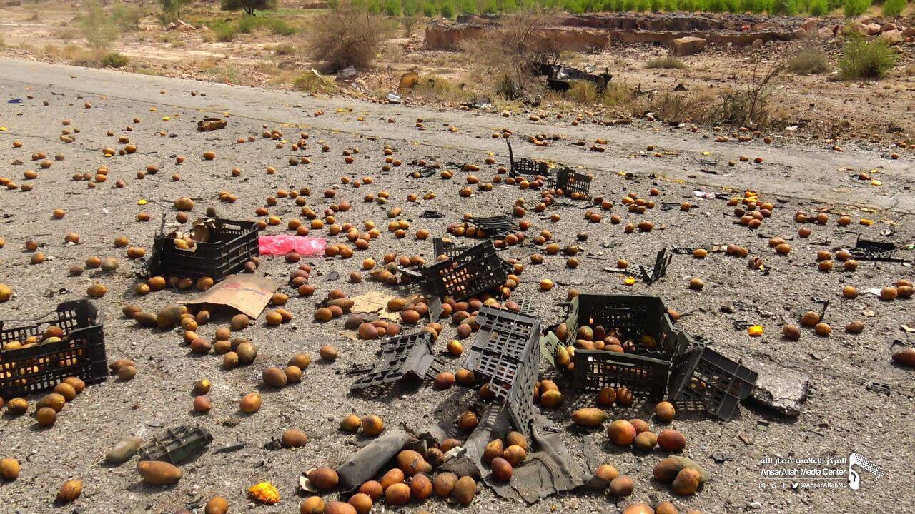 وأكد مصدر محلي في المحافظة، أن طيران “التحالف” شن غارة جوية على سيارة مواطن محملة بفاكهة المانجو بمديرية “مجز” وأسفرت عن مقتل 6 مواطنين وإصابة آخر بجروح بليغة، وأيضا تدمير السيارة المستهدفة وإلى جوارها دراجة نارية، موضحا أن المزارعين كانوا في طريقهم سوق “قطابر” لبيع محصولهم من الفاكهة.