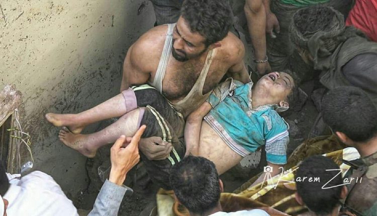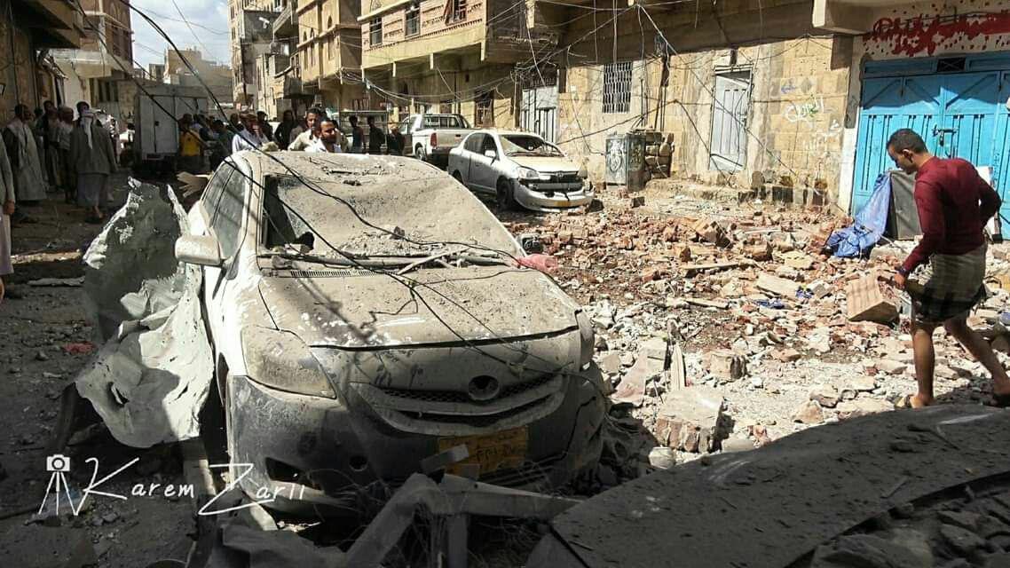 وكان طيران “التحالف” شن غارات مباشرة،  صباح اليوم، على حي سكني وسط العاصمة صنعاء في تقاطع شارعي الرباط والرقاص، مرتكبا جريمة وصفتها بيانات حقوقية بجريمة حرب مكتملة، محملة المجتمع الدولي والأمم المتحدة مسؤولية التغاضي عن هذه الجرائم التي ترتكب بحق الشعب اليمني بشكل شبه يومي منذ مارس 2015م.