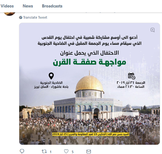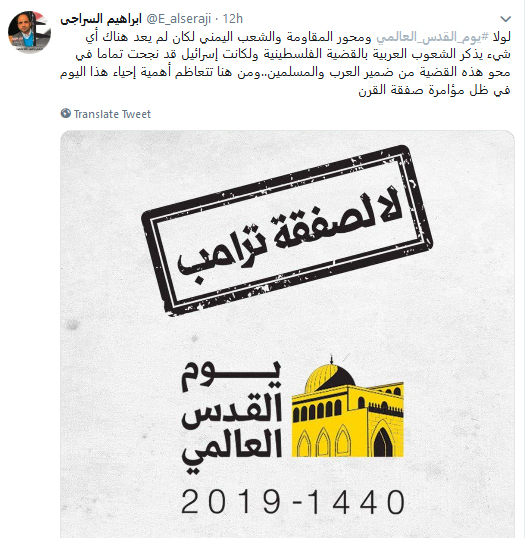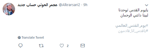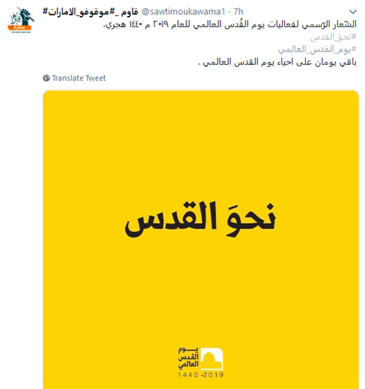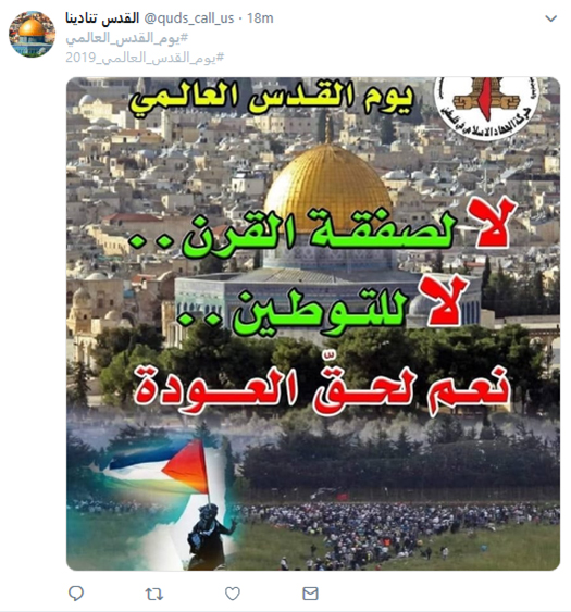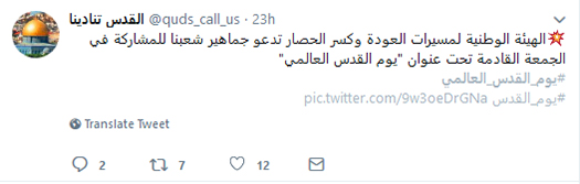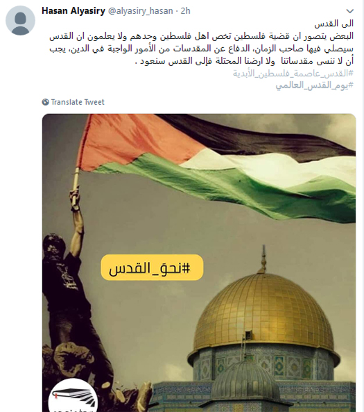 يتصدر وسم يوم القدس العالمي قائمة الوسوم الأكثر تداولاً على تويتر، وهنا أبرز ما ورد من تغريدات قبل يومين من المناسبة: