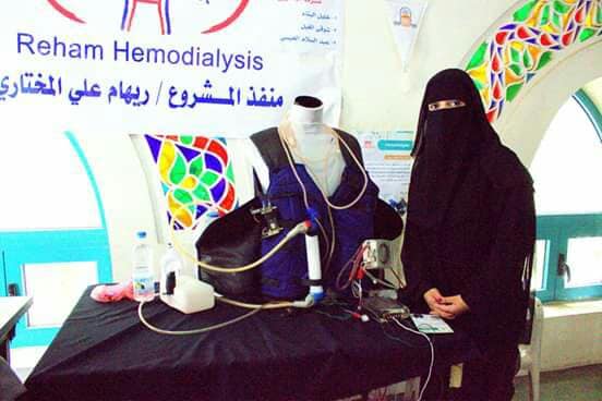 وقالت المهندسة، ريهام المختاري، الطالبة في قسم الهندسة بكلية المجتمع بالعاصمة صنعاء، أن الجهاز يسمى بـ (Reham Hemodialysis) لغسيل الكلى كبديل عن الأجهزة الأخرى الغير المتواجدة في البلد.
