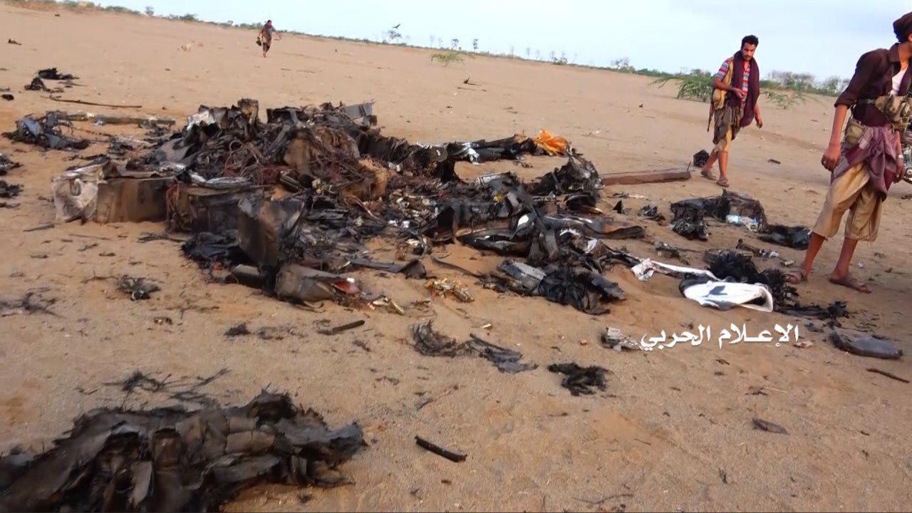 وتُظهر المشاهد حُطام الطائرة الأمريكية وهي من طراز MQ9 القتالية المتطورة وهي طائرة بدون طيار، وأعلن المتحدث الرسمي باسم قوات الحوثيين العميد يحيى سريع أن الدفاعات الجوية أسقطت الطائرة فوق قرية الزعفران في الساحل الغربي بصاروخ مناسب أرض جو.