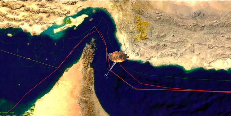 الخط الأخضر يمثل حدود المياه الاقليمية الإيرانية والخط الأحمر حركة مسار الطائرة الأمريكية المسيرة