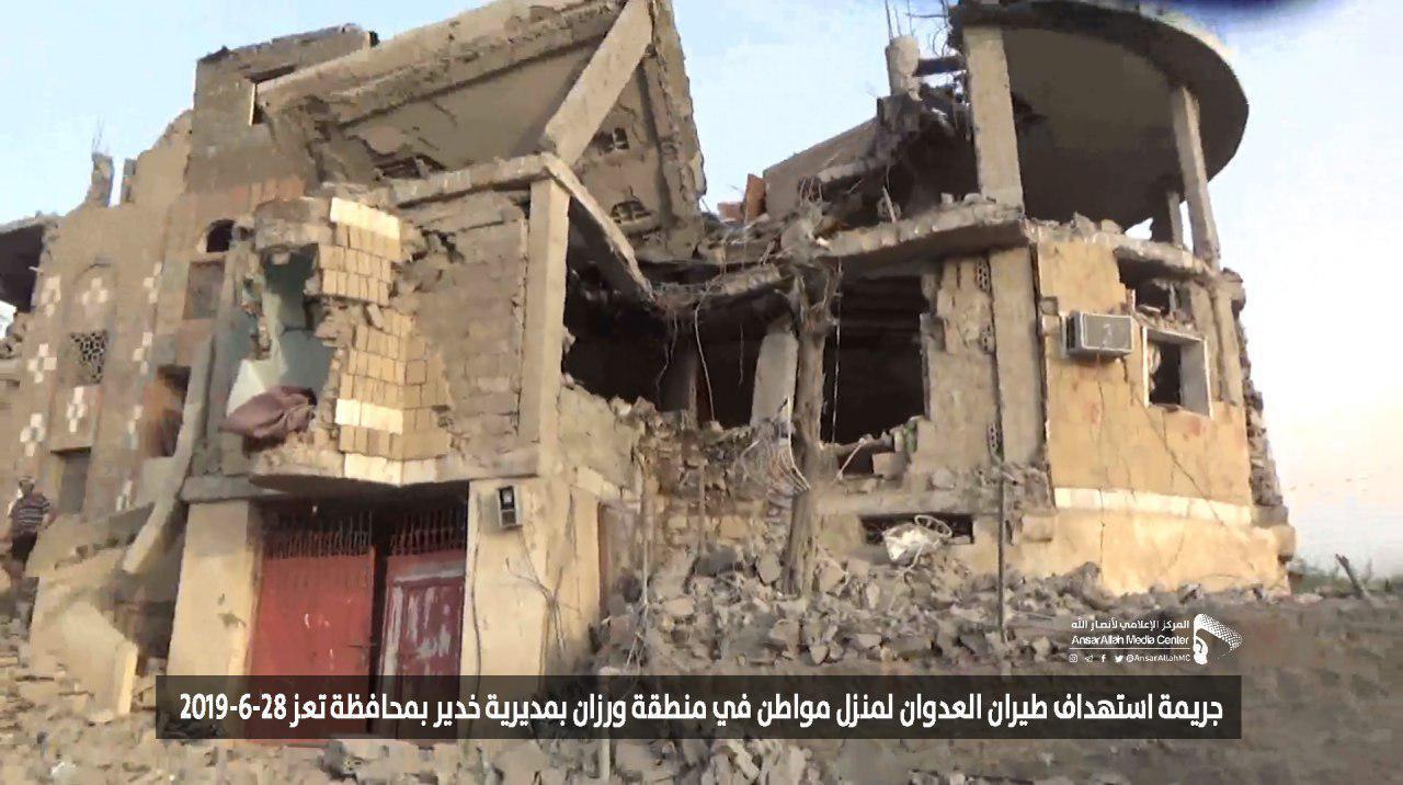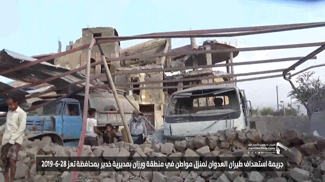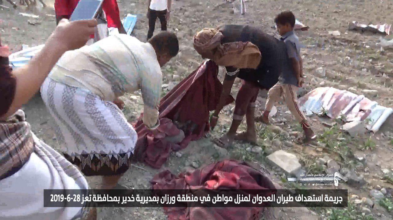 قتل 8 مدنيين يمنيين من أسرة واحدة في غارتين شنها طيران التحالف السعودي الإماراتي، يوم أمس الجمعة، على منزل بمحافظة تعز.