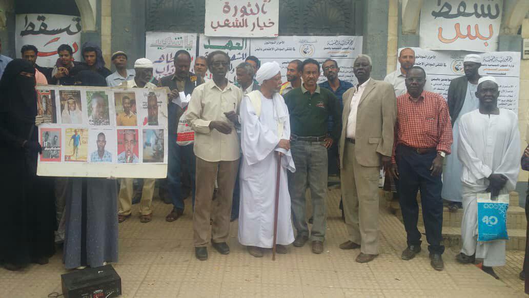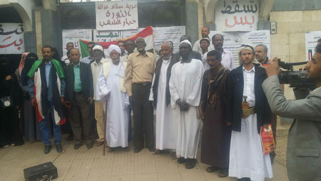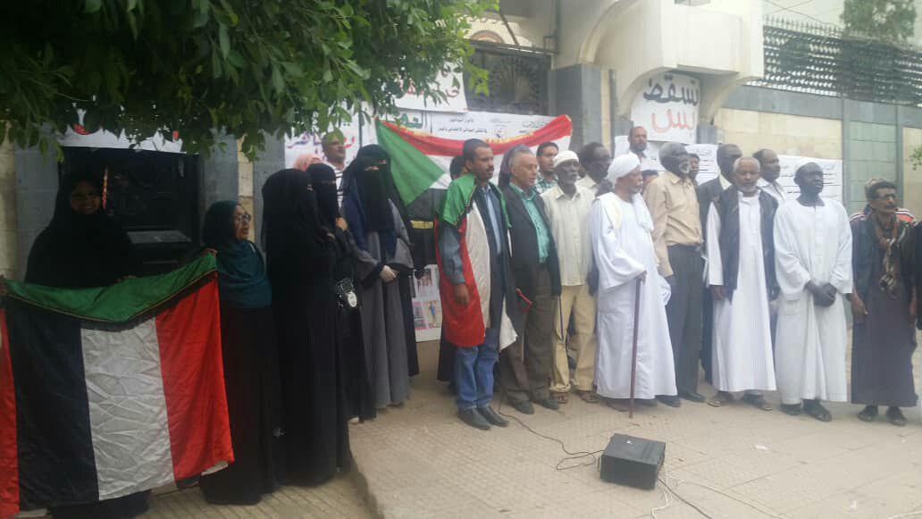 وفي الوقفة أكد ممثل فرع حزب الأمة السوداني في اليمن رئيس مجلس الحكماء السودانيين، شيخ الدين محمد نور، على مطالب الثوار السودانيين في اليمن .. مطالبا المجلس العسكري السوداني بإيقاف المتاجرة بالثورة وبيعها للإمارات والسعودية ومحاولة الالتفاف عليها.