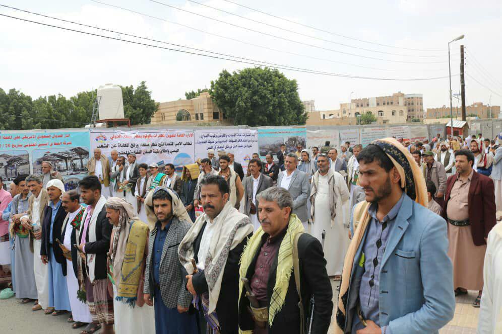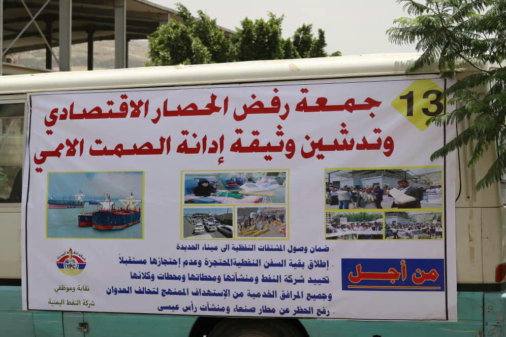 وتأتي هذه الوقفة الاحتجاجية في إطار الاعتصام المفتوح الذي ينفذه موظفي شركة النفط اليمنية منذ 90 يوماً أمام مكتب الأمم المتحدة بالعاصمة صنعاء للمطالبة بإطلاق السفن النفطية المحتجزة من قبل تحالف العدوان وتحييد منشئات ومرافق الشركة عن الصراع.