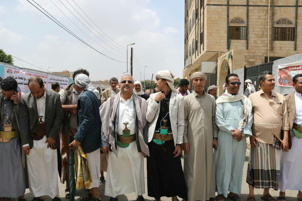 نظم موظفو شركة النفط اليمنية والنقابات والهيئات التابعة لها عقب صلاة الجمعة، وقفة احتجاجية أمام مكتب الأمم المتحدة في شارع الستين بالعاصمة صنعاء.