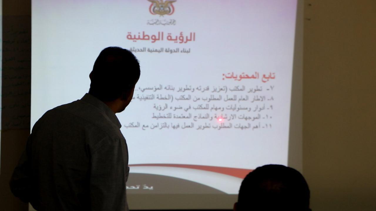 وحسب الوكالة، ناقش المشاركون في الورشة التي حضرها أمين سر المجلس السياسي الأعلى الدكتور ياسر الحوري ونائب رئيس المكتب التنفيذي للرؤية الوطنية يحيى المحاقري، دور دوائر مكتب رئاسة الجمهورية وأهمية بناء القدرات وتطوير آليات صنع القرار، وكذا البعد المؤسسي والفني والتدريبي لكوادر المكتب ومختلف مؤسسات الدولة.