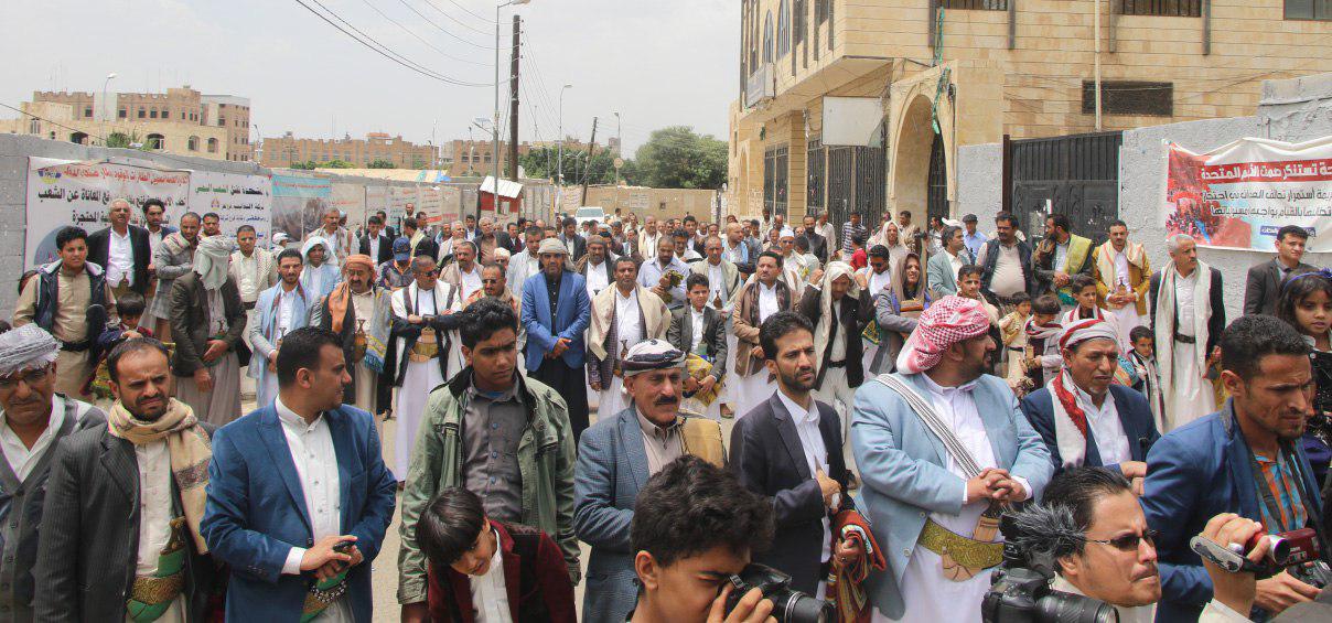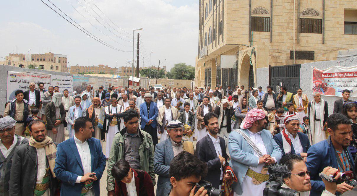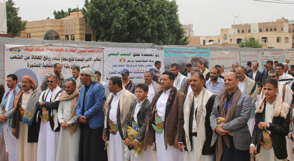 نظم موظفو شركة النفط اليمنية والنقابات التابعة لها، الجمعة، وقفة احتجاجية أمام مكتب الأمم المتحدة بصنعاء عقب صلاة “جمعة الترابط المجتمعي أمام التقاعس الأممي”.