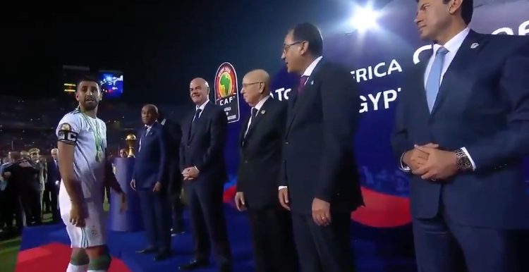 تجاهل نجمُ المنتخب الجزائري رياض محرز مصافحةَ رئيس الوزراء المصري مصطفى مدبولي أثناء تتويج “محاربي الصحراء”، كأس أمم إفريقيا مساء الجمعة بعد الفوز على السنغال.