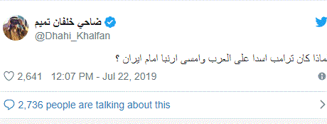 وسبق هجوم خلفان هجومٌ من الأكاديمي الإماراتي، عبدالخالق عبدالله، على خلفية إلغاء ترامب الضربة العسكرية على إيران، بعد تهديدات مطولة بالرد على إسقاط الطائرة الأميركية المسيرة.