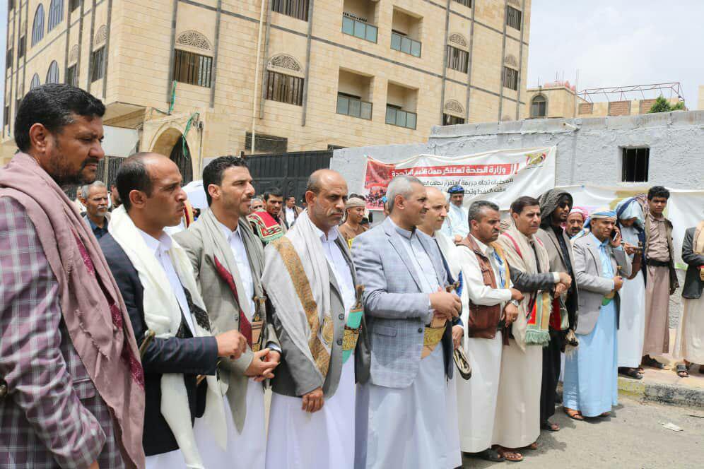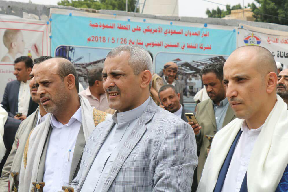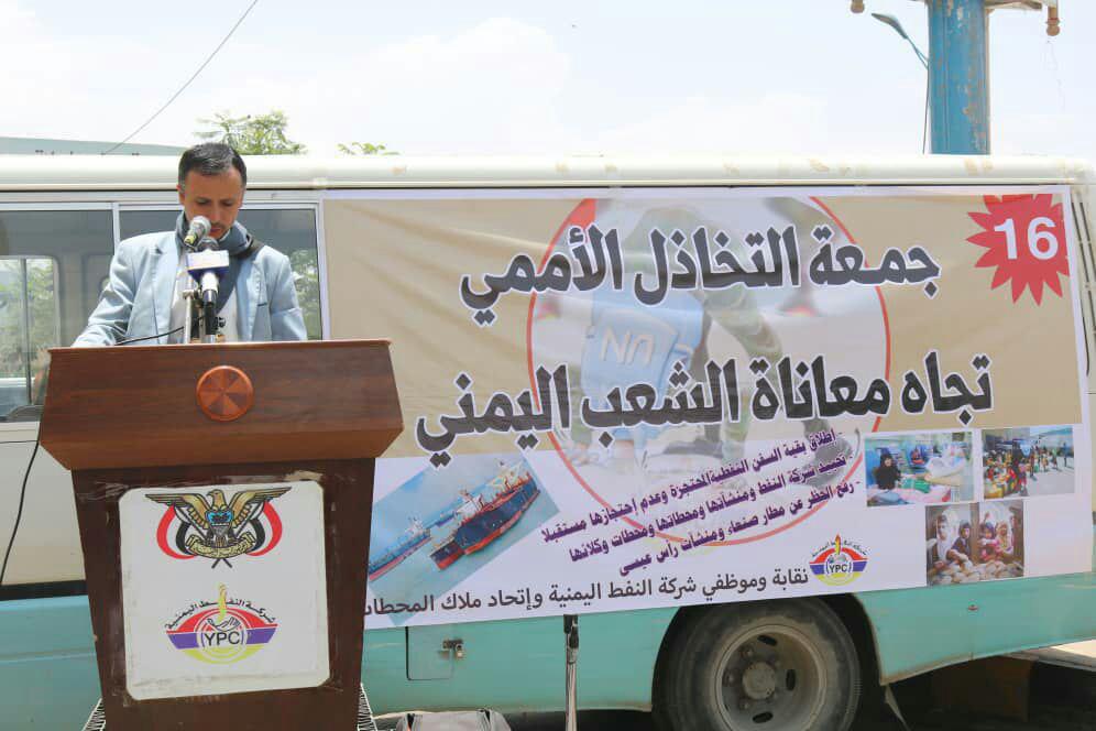 وخلال الوقفة أكد الناطق الرسمي لشركة النفط اليمنية أمين الشباطي أن التحالف السعودي أحتجز سفينة نفطية أخرى أضافة إلى عشرات السفن التي تم احتجازها مسبقاً.