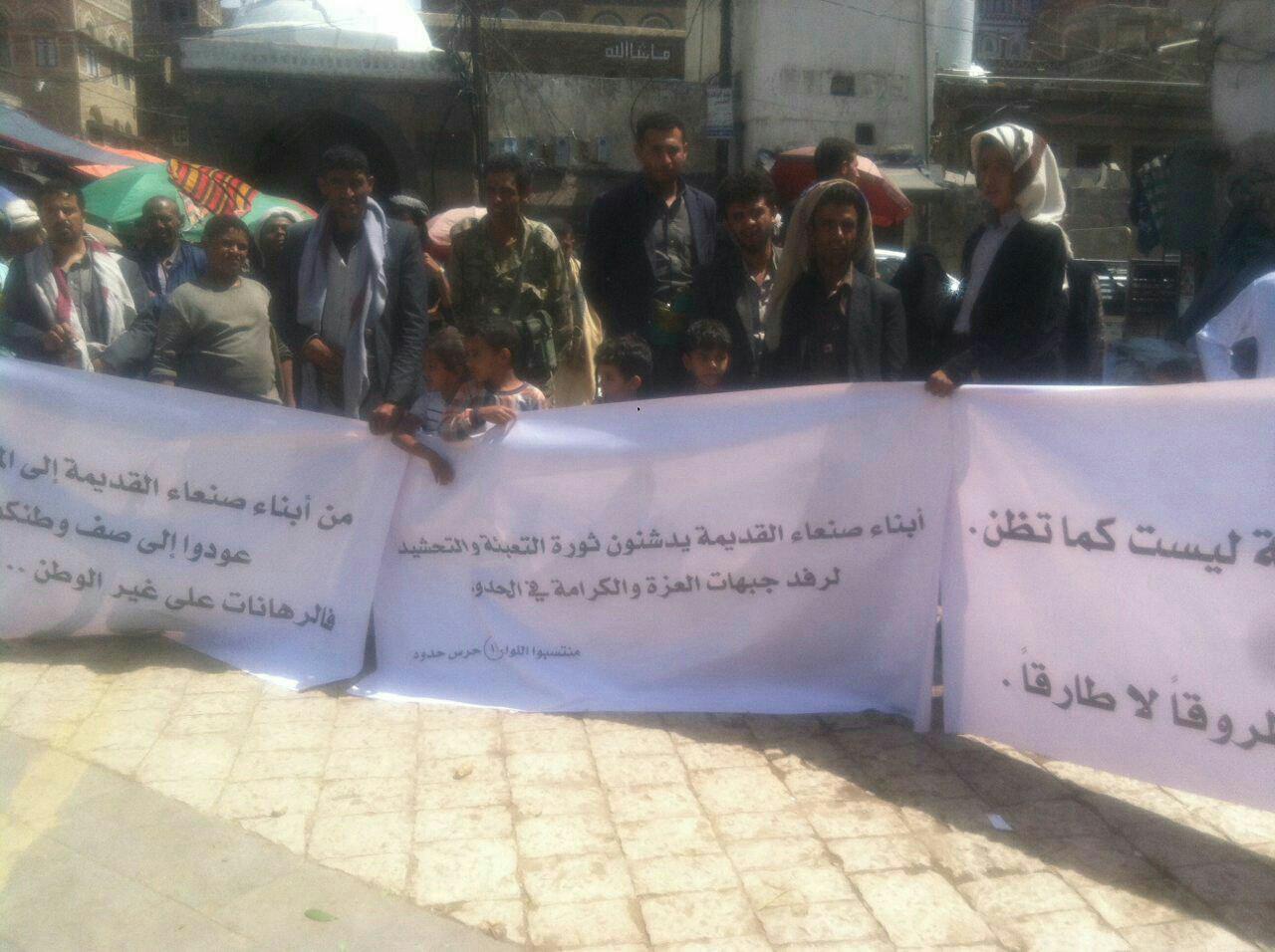 وفي بيان وقفتهم، أشاروا إلى أن قوى العدوان من آل سعود ونهيان وأسيادهم من اليهود والأمريكان يسعون إلى تدمير هذا البلد وتمزيقه وضرب النسيج الاجتماعي وإدخال كل الشعب في صراعات وفتن للقضاء على أهل هذا البلد المعروفون بشجاعتهم ومواقفهم الدينية والقومية الأصيلة. حسب تعبيرهم.