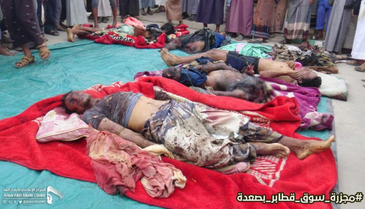 وأسفرت المجزرة التي ارتكبتها القوات السعودية في سوق آل ثابت بمحافظة صعدة يوم الإثنين عن مقتل وإصابة 40 مدنيا بينهم 18 طفلا حسب تقرير طبي حكومي.