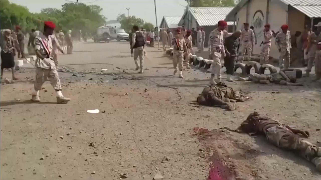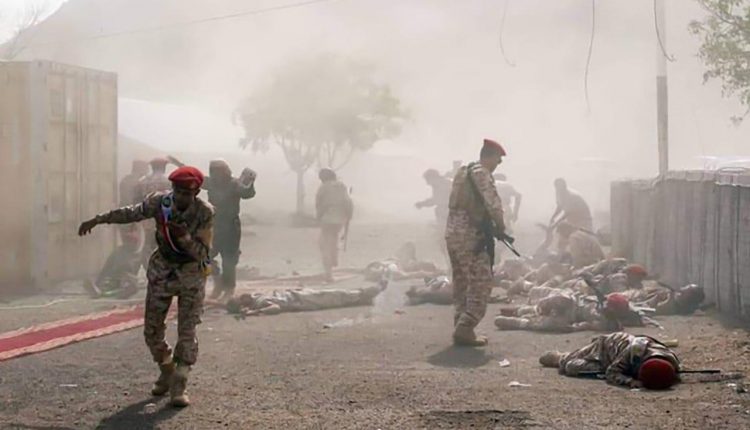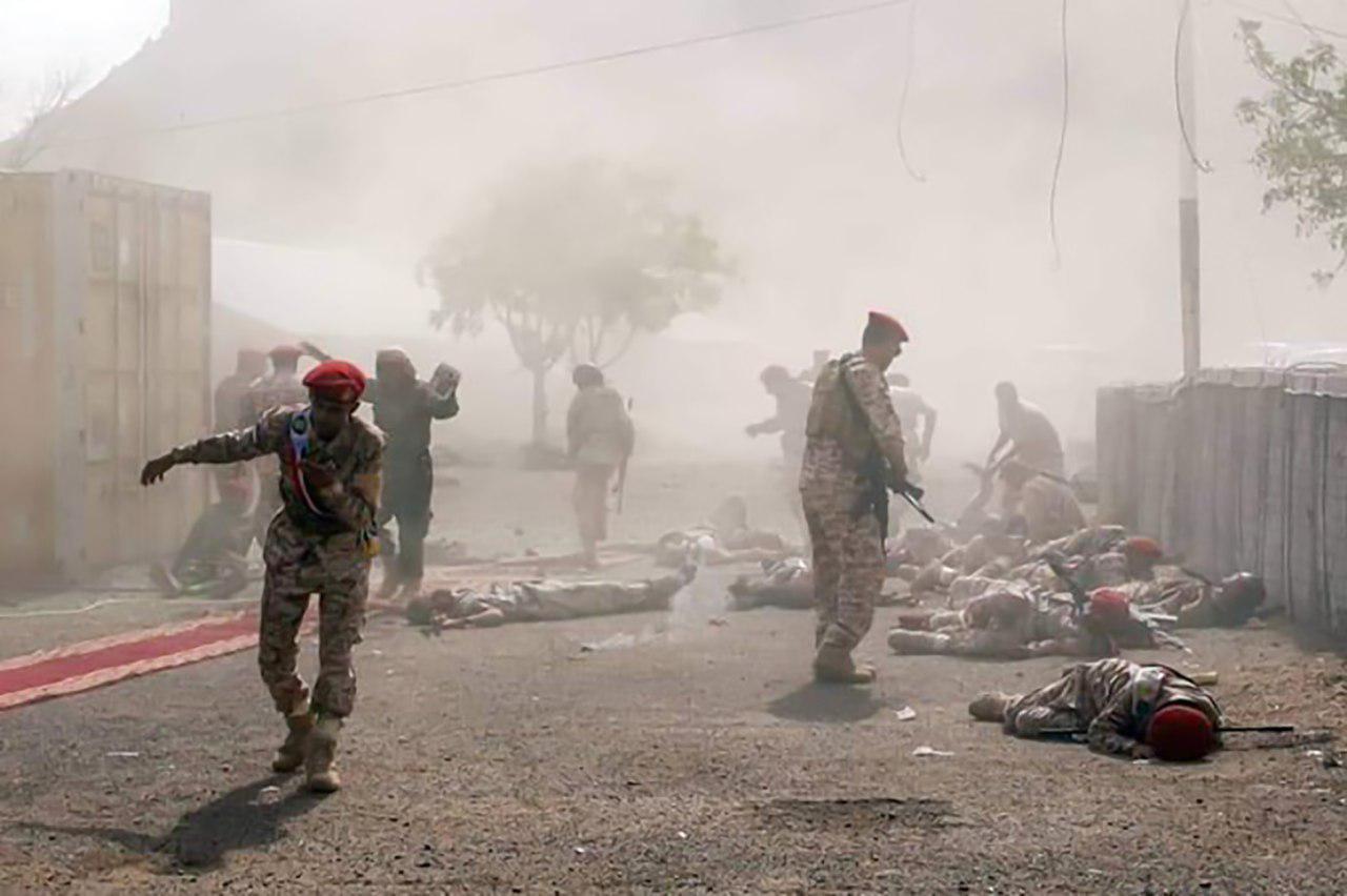 قتل وجرح العشرات من جنود قوات “الحزام الأمني” المدعوم إماراتياً، في هجوم مزدوج نفذه الحوثيون بطائرة مسيرة وصاروخ باليستي على عرض عسكري بمدينة عدن جنوبي اليمن.