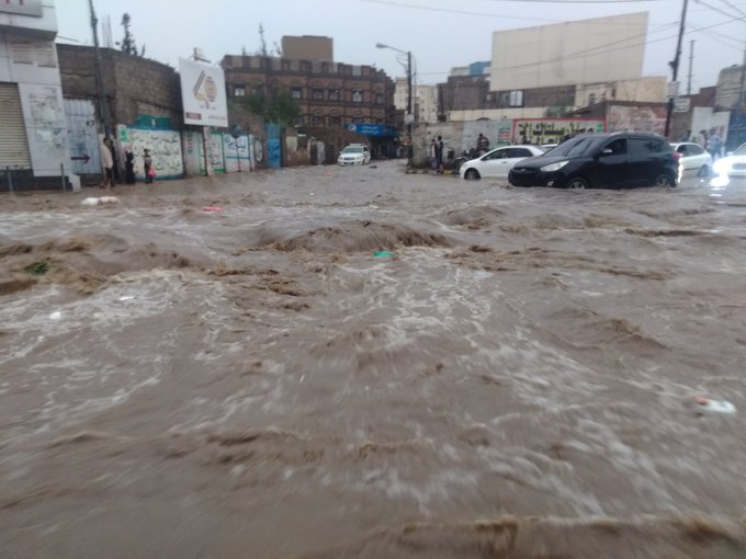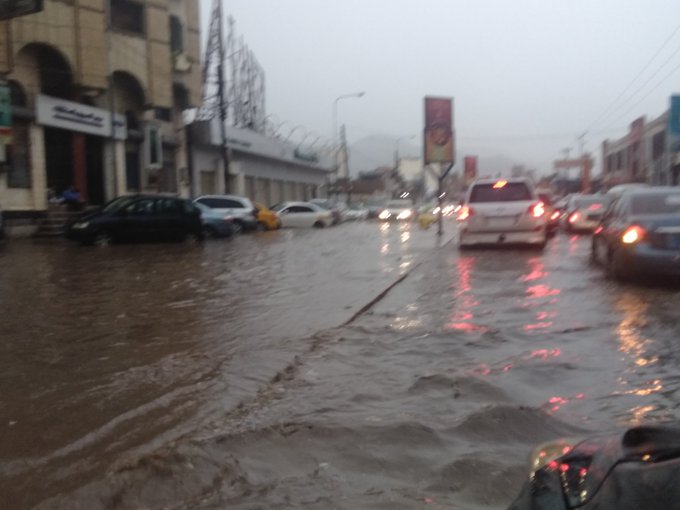 وأظهرت صور تداولها ناشطون على وسائل التواصل الإجتماعي ومشاهد فيديو مياه السيول وهي تغمر شوارع العاصمة فيما كانت وزارة الداخلية في حكومة الإنقاذ قد حذرت السائقين من العبور في “سائلة صنعاء” لتوقع تدفق السيول.