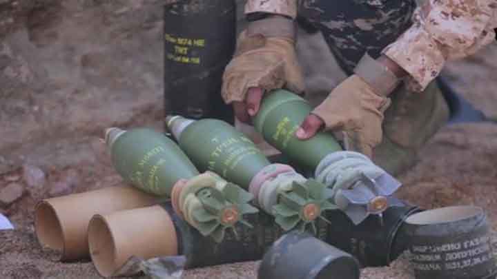 وأثبتت الصحافية في دراستها مزاعمها، حيث أعادت نشر لقطة من مقطع فيديو دعائي لـ “داعش”، أعدته خلية في اليمن ونشر في يوليو/تموز 2019، يظهر فيه قذائف هاون عيار 82 ملم تحمل علامات M74 HE KV lot 04/18. وأوضحت أن الأحرف الخمسة الأولى إلى نوع الذخيرة، وتشير الأحرف KV إلى مكان تصنيع القذيفة، K تعني مصنع الأسلحة الصربي Krusik، و V تعني Valjevo أي مدينة فاليفو، حيث يقع المشروع. والأرقام 04/18 هو عضوية الحزب (04) وسنة الإصدار (2018).