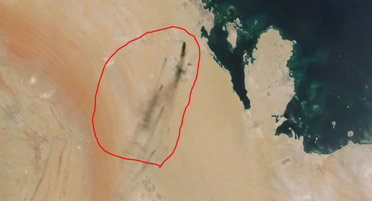 وأظهرت صور وكالة “ناسا” إمتداد السحب الدخانية إلى مئات الكيلو مترات في الأراضي المحيطة بالمصفاتين.