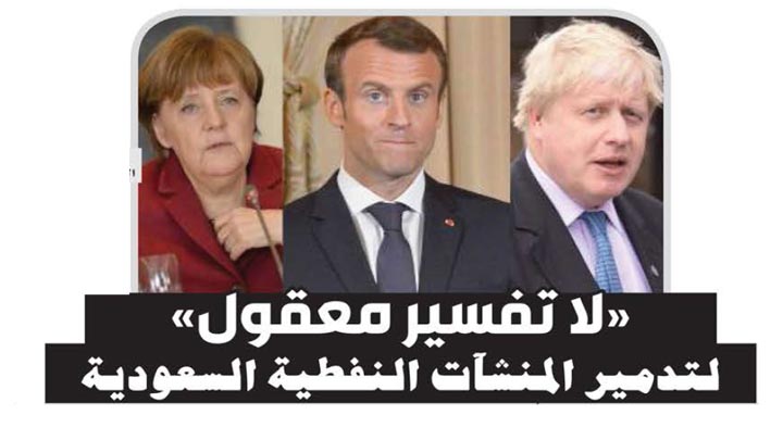 بالنسبة لكل من أنجيلا ميركل وإيمانويل ماكرون وبوريس جونسون، صار من الواضح قبل الانتهاء من التحقيق بأن «إيران تتحمل مسؤولية الهجوم».