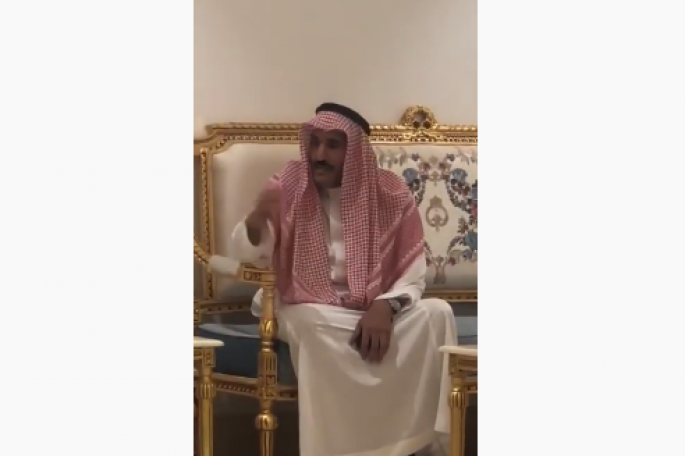 نشر سعوديون بمواقع التواصل مقطعا مصورا يظهر لحظة استقبال والد القاتل المفترض للواء عبد العزيز الفغم حسب الرواية الحكومية السعودية لأمراء سعوديين قدموا لتقديم عبارات العزاء والمواساة.