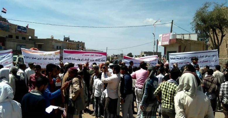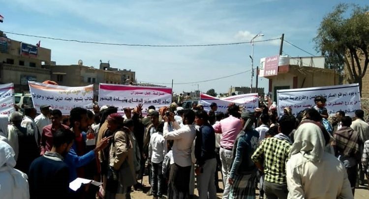 مظاهرة إحتجاجية لأبناء الشمايتين للمطالبة بإجلاء قوات الشرعية من محيط مدينة التربة