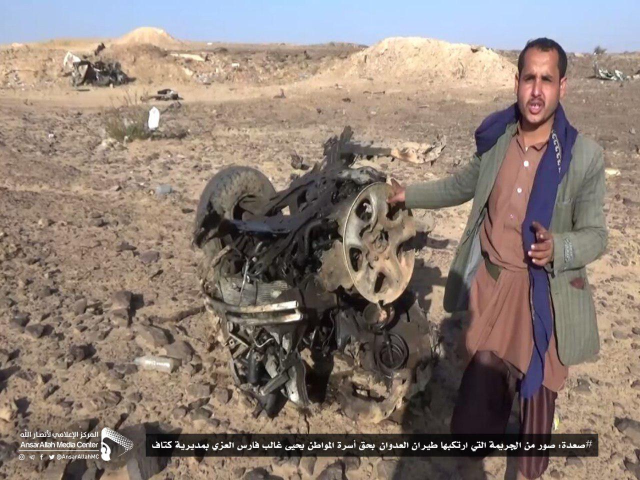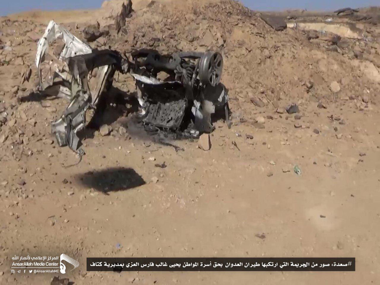 شاهد بالصور.. 4 قتلى من أسرة واحدة بغارة للتحالف على سيارة في صعدة