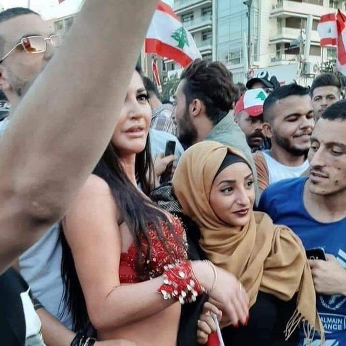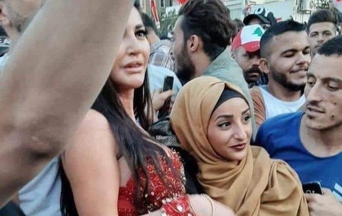 كما تداول ناشطون صورة للراقصة “سماهر” التي فجرت موجة انتقاد واسعة ضدها، بعدما ظهرت في ساحة رياض الصلح وهي ترقص وسط المتظاهرين أمام أحد المساجد، ولكن هذه المرة لم تكن الصورة لوصلة رقص بل لمتظاهر وقد بدا بحالة ذهول من بدلة الرقص التي ارتدتها الراقصة.!