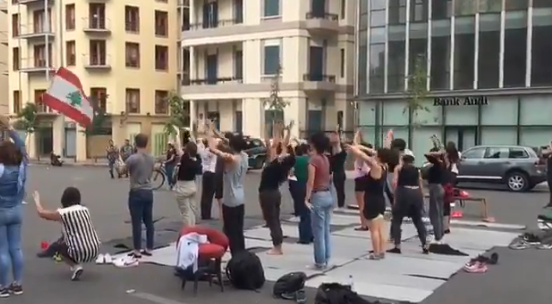 ضجت مواقع التواصل الاجتماعي بمقطع فيديو جديد من تظاهرات لبنان، أثار جدلا واسعا لمجموعة من الشباب والفتيات يمارسون “اليوجا” في مشهد لم يرق للبنانيين.