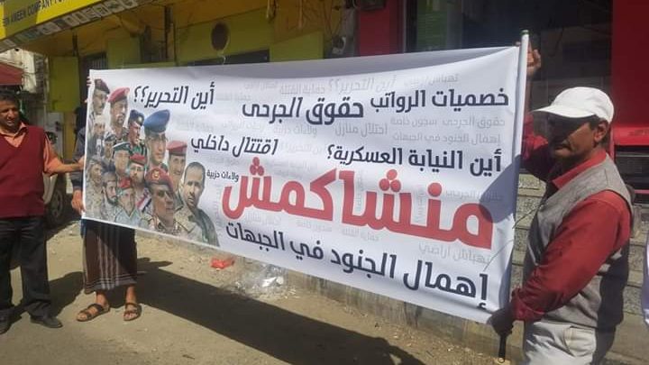 وطالب المتظاهرين بصرف رواتب الموظفين والإفراج عن المخفين قسرا في سجون المليشيات التابعة لشرعية هادي، والمطالبة بتحسين الخدمات الصحية والمعيشية للمواطنين.