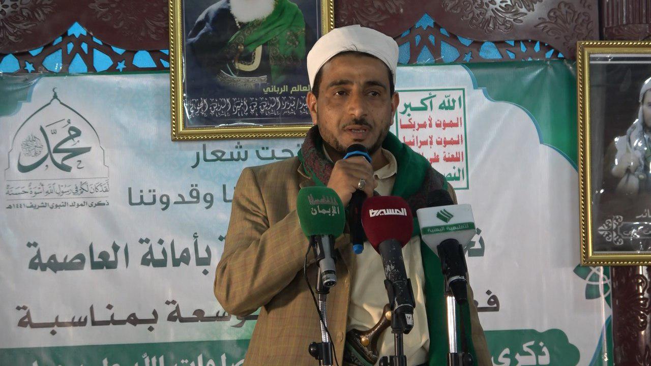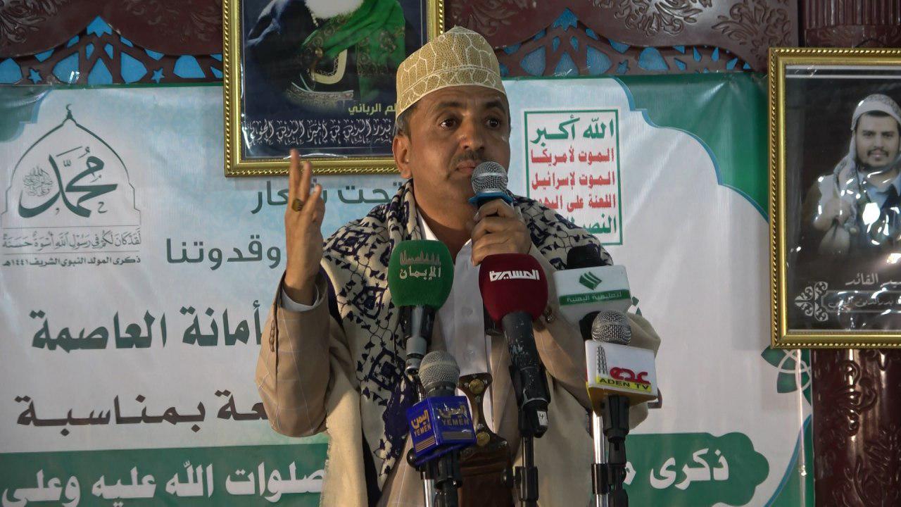 وفي الفعالية التي حضرها عضو المجلس السياسي الأعلى سلطان السامعي ألقى عضو مجلس الشورى الأستاذ خالد المداني كلمة عبر فيها عن أهمية الاحتفال بالمولد وأن ما نعيشه اليوم من احتفالات واسعة بالمولد النبوي يجسد اصالة الشعب اليمني وهي نعمة كبيرة أن يعود الشعب اليمني إلى شخصية الرسول صلوات الله عليه وعلى آله ويحيوا ذكره.