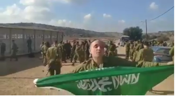 انتشر مقطع فيديو لجندي صهيوني يرفع العلَم السعودي وهو يقول: “نحن نرحب بالسعوديين في إسرائيل”.