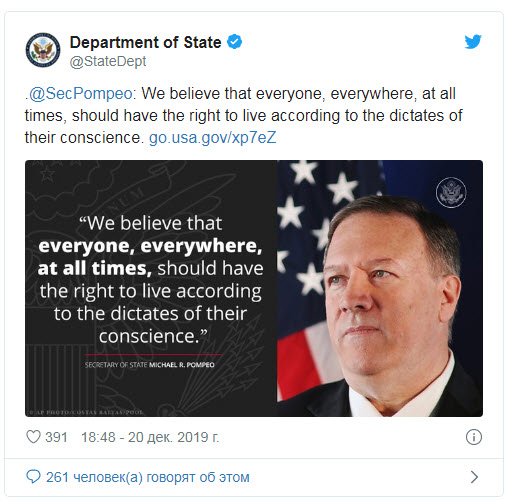 وقال وزير الخارجية الأمريكي مايك بومبيو في بيان صدر اليوم الجمعة، إن “حماية الحرية الدينية إحدى أولويات السياسة الخارجية لإدارة الرئيس ترامب”على حد تعبيره .