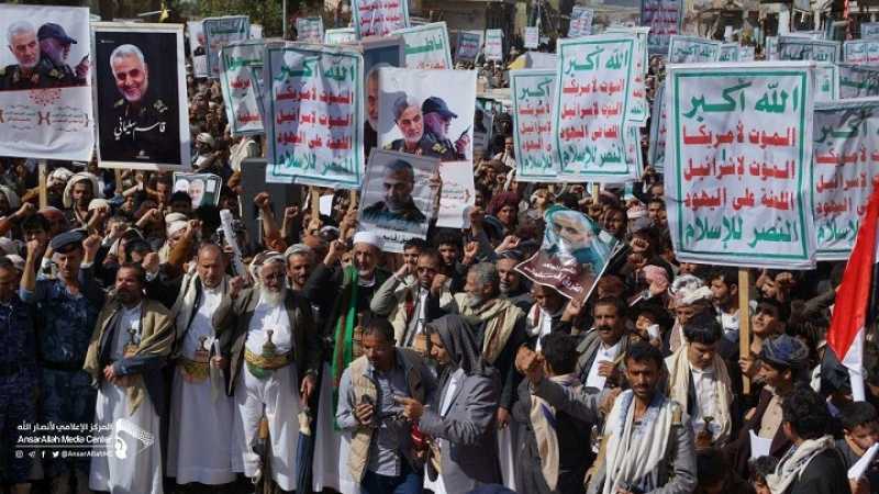 خرجت بالعاصمة صنعاء عصر اليوم  مسيرة جماهيرية حاشدة إدانة للجريمة التي ارتكبها العدو الامريكي باستهداف القائدين الكبيرين قاسم سليماني وابو مهدي المهندس. .