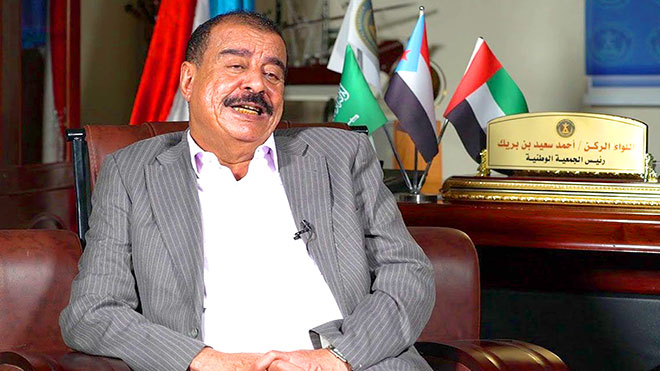 وقال رئيس الجمعية الوطنية للمجلس، أحمد بن بريك، في مقابلة صحفية، أن الانتقالي جاهز بخططه لإدارة الجنوب واستلامه من التحالف، مشيراً إلى أن دول التحالف والدول الدائمة العضوية في مجلس الأمن اتفقت على الدخول في حوار يقضي على جماعة الإخوان- في اشارة إلى حزب الاصلاح..