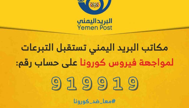 أعلنت مكاتبُ البريد اليمني عن استقبالها التبرعاتِ لمواجهة الفيروس التاجي المستجد #كورونا.