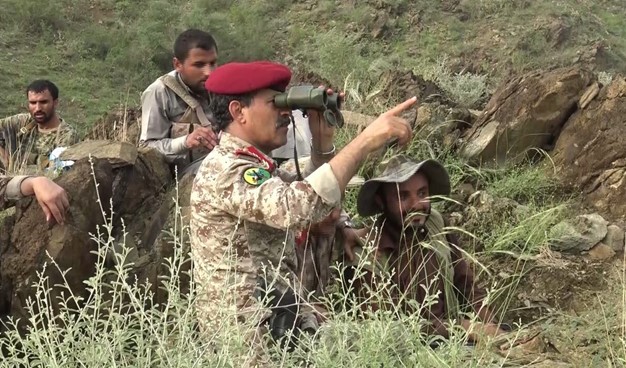 ظهر وزير الدفاع في قوات صنعاء اللواء محمد ناصر العاطفي في جبهة خب والشعف الحدودية مع السعودية مطلقا تهديدات ضد التحالف بالانتقال الى مرحلة الوجع الكبير .